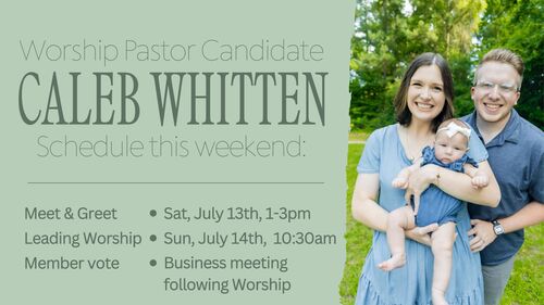 Hey Judson! My name is Caleb Whitten and I am honored to be considered as the next Worship Pastor of Judson Baptist Church! I am husband to my wife, Cailee, Dad to my 3-month-old baby girl, Mary Louise, Master’s of Divinity student at New Orleans Baptist Theological Seminary, and the Worship + Young Adult Pastor at Bedico Baptist Church in Ponchatoula, Louisiana.
