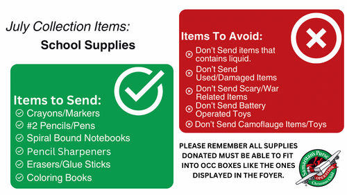 Operation Christmas Child is one of our offerings from Vacation Bible School.