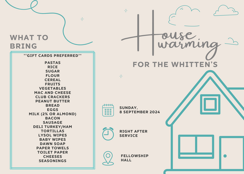 WHERE? Parsonage House in the back of the church parking lot.
